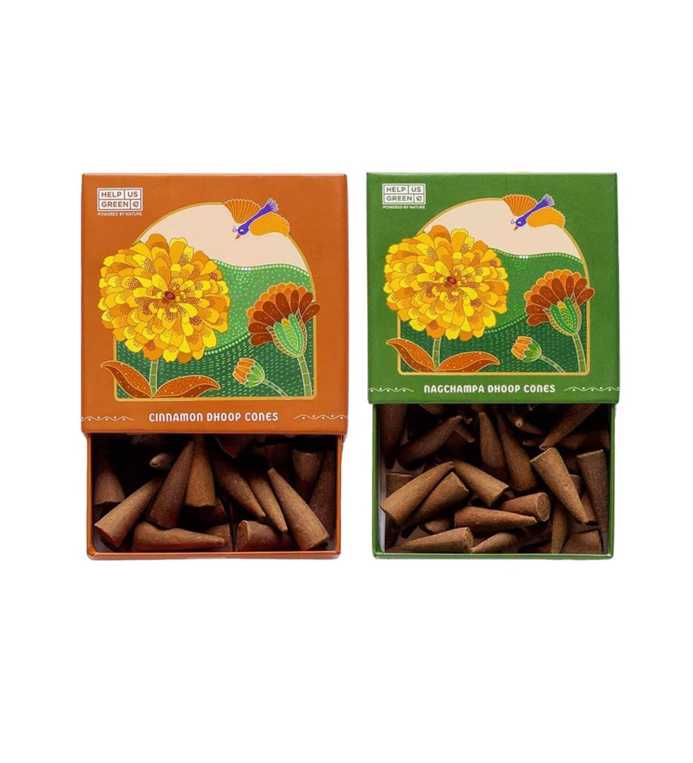 This festive season, breathe in the richness of aromatic incense sticks and dhoop cones that elevate the ambience of any environment! Explore Help Us Green combo range that forms the perfect festive gift box!
