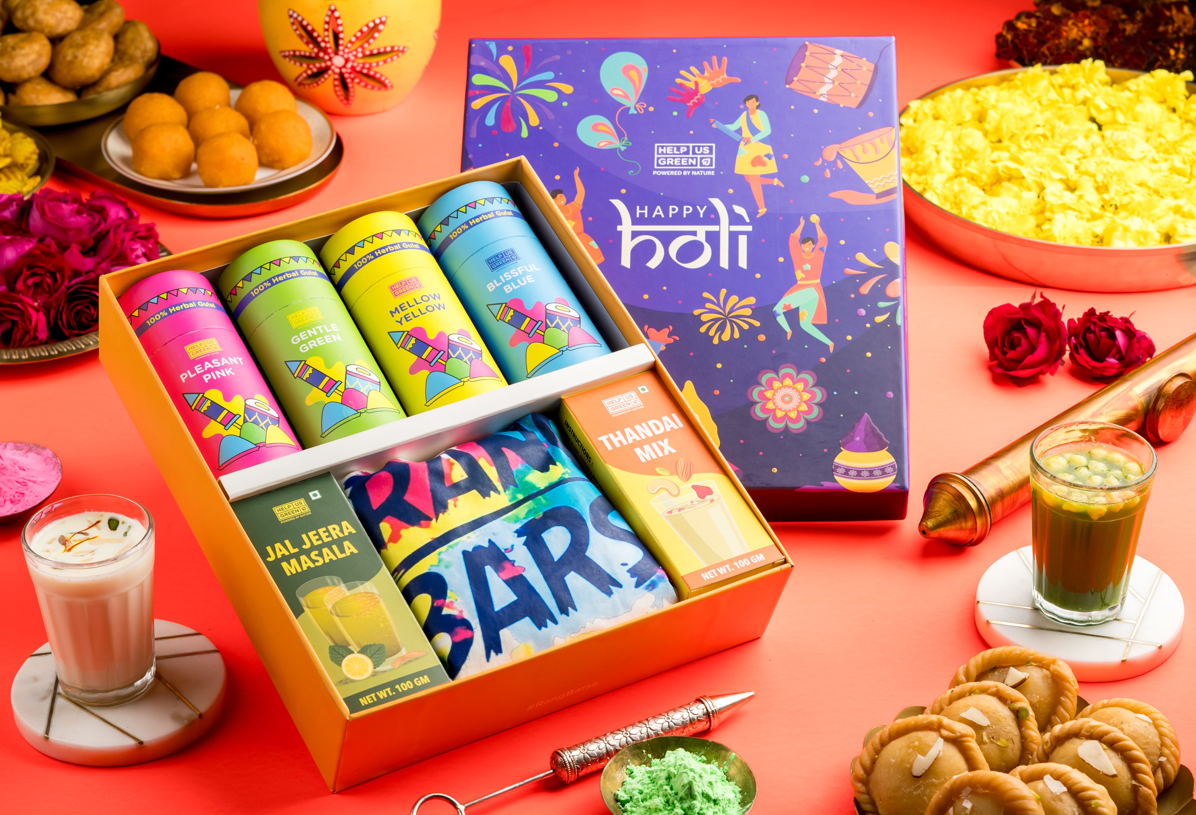This Holi 2025, celebrate with more than just vibrant hues—make every splash a statement of sustainability. With Help Us Green’s Holi gift hampers, each smear of eco-friendly, organic colors tells a story of innovation and impact. Handcrafted from recycled flowers, our natural colors are safe, non-toxic, and kind to the planet. Thoughtfully designed for festive joy and meaningful corporate gifting, every hamper represents a conscious choice that empowers communities and nurtures a greener world. Paint your celebrations with purpose and create memories that last far beyond the festival of colors.
