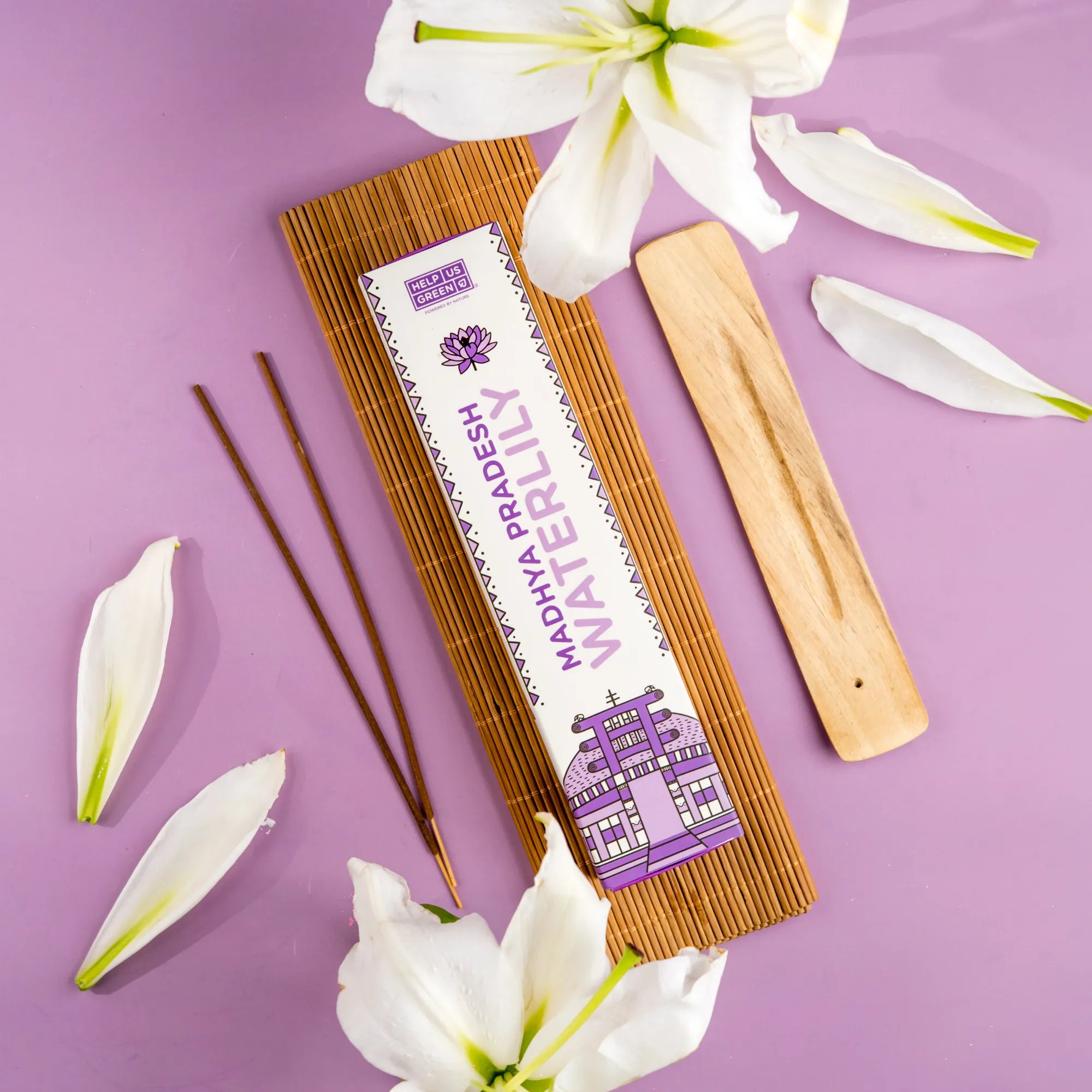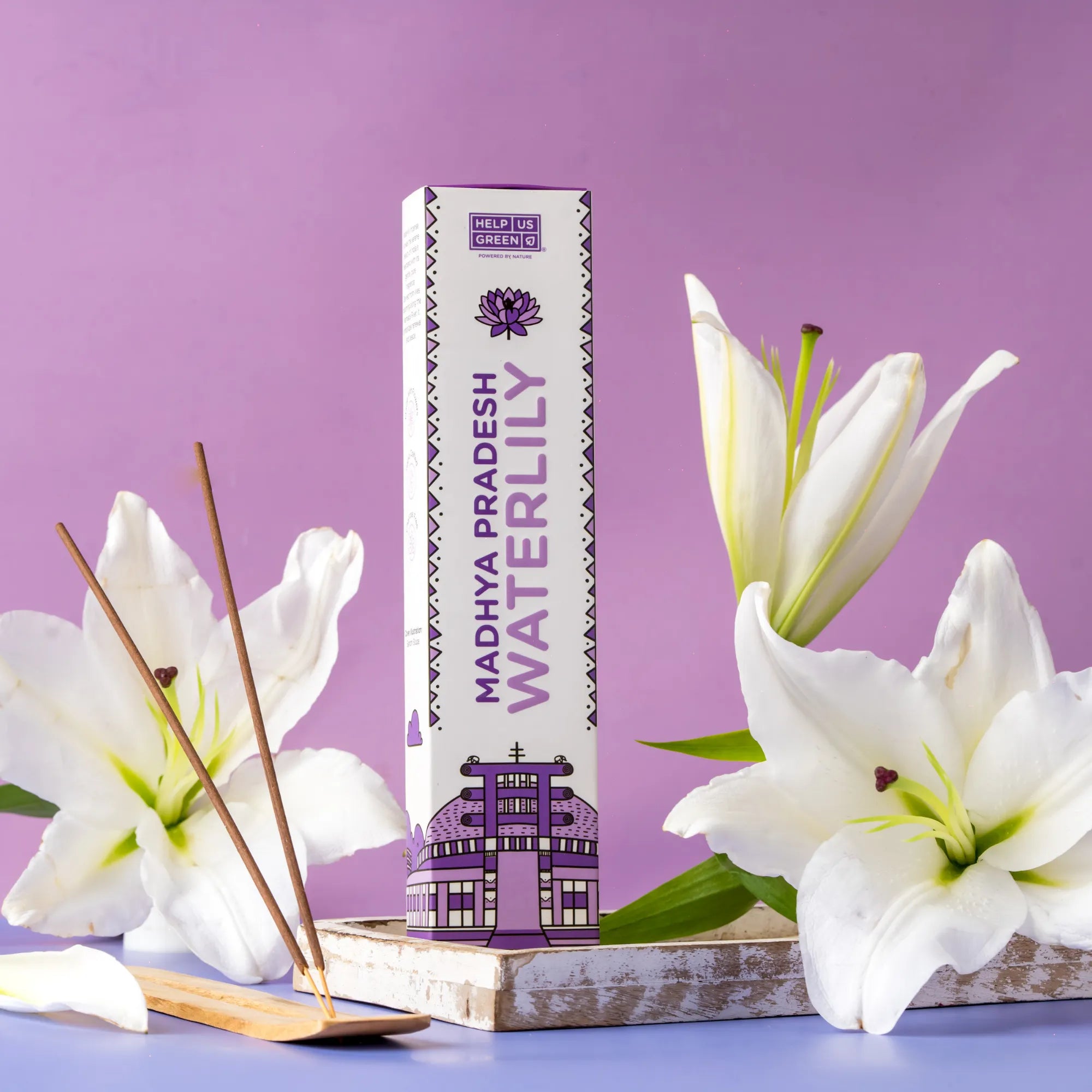 Madhya Pradesh Waterlily incense sticks are crafted to create spaces that feel light, balanced, and composed. Each pack contains 40 sticks, designed for a steady 45-minute burn that releases a soft, clean floral aroma. Inspired by water lilies blooming along the Narmada River. The fragrance is gentle, bringing a sense of clarity and ease that suits reflective moments, everyday rituals, and thoughtfully curated environments. Handcrafted from reclaimed sacred flowers, these incense sticks offer purity in scent and intention.