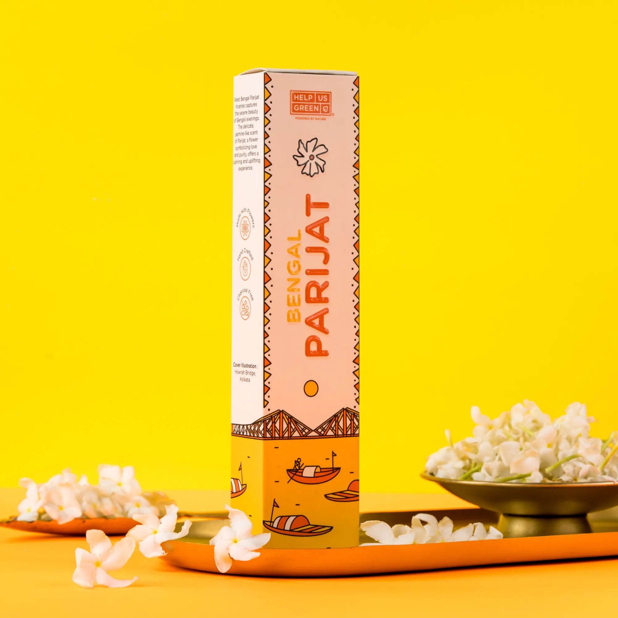West Bengal Parijat incense sticks unfold like a quiet Bengali evening at dusk. Each pack holds 40 slender sticks, releasing a soft jasmine fragrance for up to 45 minutes. Inspired by Parijat, the night-blooming flower revered across Bengal, the aroma carries notes of calm and quiet devotion. Crafted from reclaimed sacred flowers, every burn feels unhurried and pure. Spaces soften. Thoughts slow. The air feels tender and composed, echoing traditions rooted in love, ritual, and stillness.
